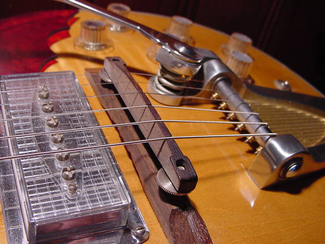 I’m not sure about the floating wooden bridge, but you just have to love the rest… especially the Kleenex Box pickups. The controls, translucent pickguard, the trem unit… to cool!