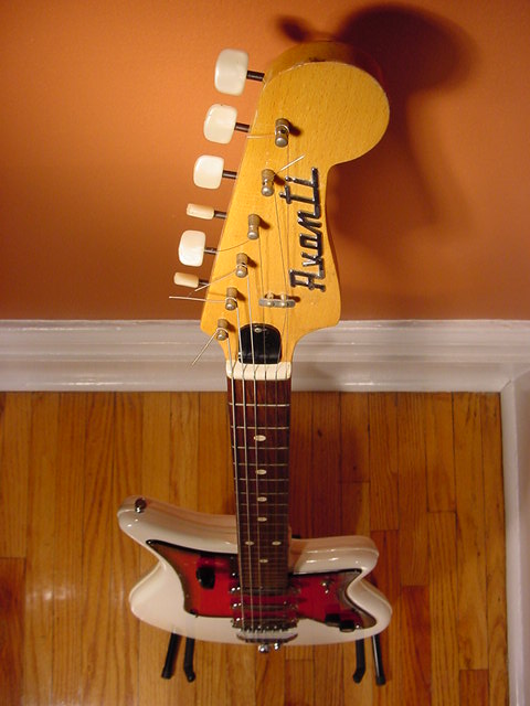 In the 1950’s Italian manufacturers were cranking out accordions by the thousands. When Rock ‘n Roll came on the scene, many of these builders switched from accordions to electric guitars. Bartolini was one of them. When the electric guitar boom took off in USA in the early 60’s, Italy became a source to fill the appetite. Accordions were plastic covered, so many of these early Italian guitar were too, some with plastic bodies like this Avanti model.