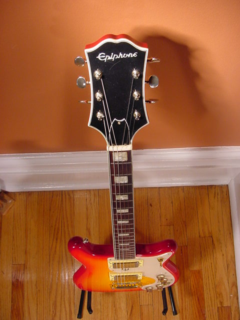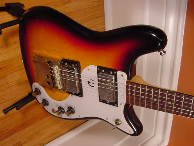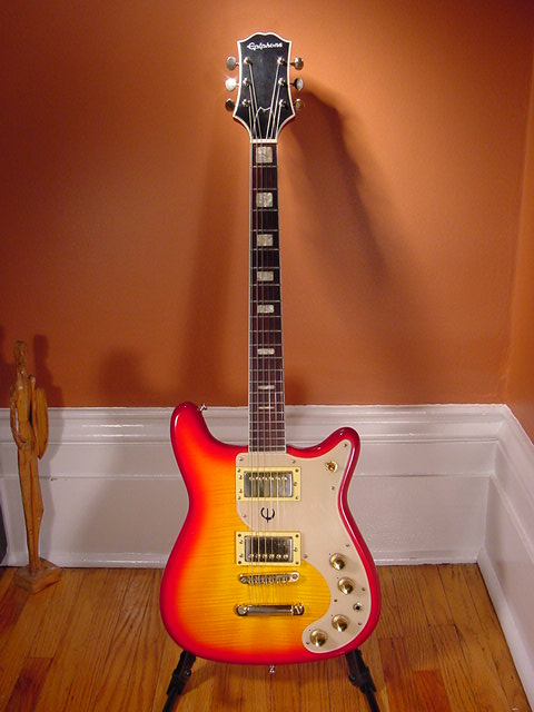 Nice to see a little interest on these Epi’s. I had one identical to the one in the second set of photos with the gold hardware for many years. They were a great looking and great playing guitar, but they sounded a little bland. A good set of aftermarket pickup would have done a world of wonders. Bottom line, a nice ax.