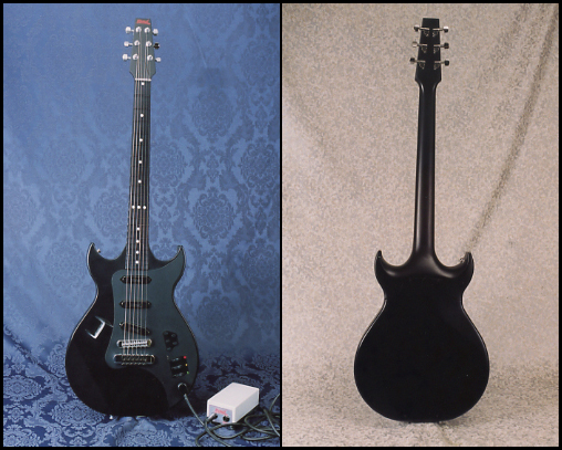 One other person involved with the Bond was Dave Stewart, guitarist with the Scottish duo The Eurythmics. The guitar does have a look that went with that band’s sort of disco-y, high-tech, New Wavey style. The Bonds were made in Scotland and distributed in the U.S. by Unicord, the company that did the Univox brand back in the day. The Bond Electraglide was introduced in 1984 and dropped by the wayside in 1986. They were pretty pricey, with a list price of $1,195 for a stoptail, $1,295 for a vibrato version. They came with a transformer box, locking strap, and hardshell case.