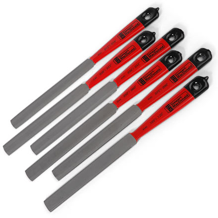 Here is where it is important to use nut files that are sized appropriately for the gauge of string you wish to use. If you’re using a set of #10-46, then for this low “E” string slot you will want a file that will cut a slot to accommodate a string that is .046″ in diameter. That said, you do not want the slot to be the same size as the string – you want the string to be able to move freely and not be gripped like it’s in a vise. A great way to do this would be to use a file that is a couple thou larger than the string size you are going to use. Alternatively, using a .046″ sized file for the low “E” and applying a slight “side-to-side” technique as you file will help achieve the right width.