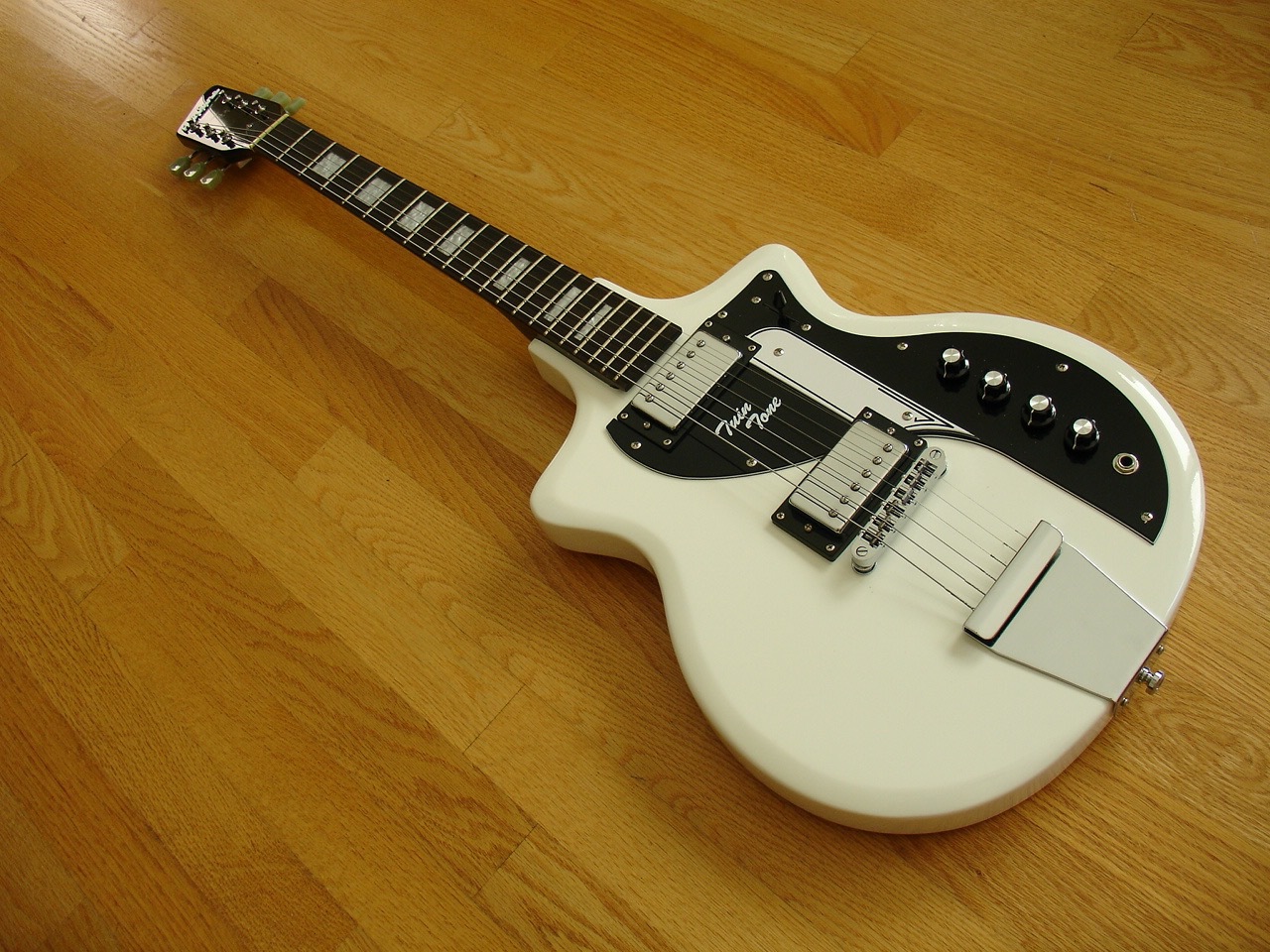Wow! My twin tone has just arrived straight away! All I did was lower the action a tad, tune her up and the sounds!!! Before I get to those the first thing I noticed was this is not one of those tombstone-weight guitars that eats into your neck after 2 minutes. Pleased about that because it feels as solid as a rock without having to lug around half a tree trunk. The neck and frets – gorgeous. Machines, silky smooth. Hardware layout, sensible, intuitive. 3 way select, top both or bridge p/u. Controls top to bottom: Neck p/u and tone, then bridge p/u and tone. The mixes you can do are immediately obvious. Broad, mids and bass and treble whatever blend you want. It’s one of those guitars you know is good as soon as you wrap your left hand around the top three frets and knock out the standard chords – and they all sound as sweet as a sweet thing! I got an airline! At last! Wooo hooo!