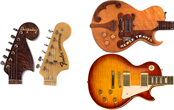 In fact, it is said that Paul Bigsby, Leo Fender, and Les Paul had meetings to discuss guitar building and design. It wouldn’t be a stretch to assume that these three got ideas from each other, whether they gave it willingly or not. The fact that Fender’s 6-in line headstock on the Stratocaster with such a similar shape was bothersome to Bigsby (so much so that it eventually led to an unsuccessful lawsuit), but not so much that it would slow him down. He maintained his “artist” approach – building instruments by himself for individual clients. While this approach ultimately led to a 2-year waiting list, it may very well be the reason that Bigsby was responsible for revolutionizing so many key elements in guitars – when an artist asked for a customization, he would figure out a way to incorporate it. A guitar built for Jimmy Bryant (purchased by Billy Byrd) for example may have been the first solid body electric to feature a double cutaway: