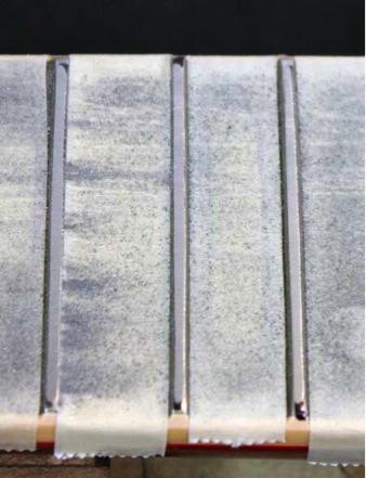 With a straight neck and the strings off, you can begin to map out the bad frets. Using a fret rocker or straight edge, test each fret in the same way I explained in Issue 5. This time, however, you need a way to remember where the problem areas are. With a sharpie, mark along each fret where the rocker… rocked. If you’re nervous about slipping with the marker, you can tape off the entire neck as seen in this picture:
