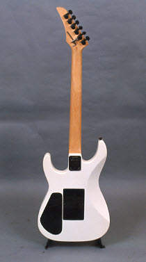 I’m not sure how this graphic was produced, but I’m guessing its some sort of photo-printing process of an original airbrushed image. This is a pretty standard form of Superstrat, with the H/S/H pickup layout. The pickup covers are marked “Vester” and encase serviceable Korean pickups. The controls are interesting. Supporting the master volume and tone are the mini-toggles that control each pickup. The single-coil is on/off. However, the humbuckers are on/off/on, reversing the phase between the two on positions. Pretty clever and pretty complicated, if you ask me.