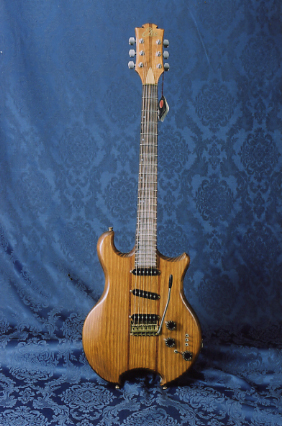 I don’t think the guitars Benny Cintioli imported were designed by him. More like he picked a few models to sell at his shop. These included this EKO CX-7 Artist/T that was made in 1982. I love the dark-stained pine body and set-in neck. The brass nut, 2-octave fingerboard, and DiMarzio humbuckers were typical for the time. This was made just as locking vibratos were coming on the market, but didn’t have one yet. This is extremely light-weight and a really hot guitar, not at all what you’d expect from and EKO.