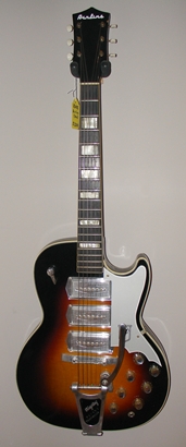 | Washburn HB-35S Guitarw/OHSC, Korea$650 | 60’s AIRLINE Barney KesselUSA$1350 | Mustang 500ItalySOLD | 1959/60 Airline ResoglasUSA$2250 |