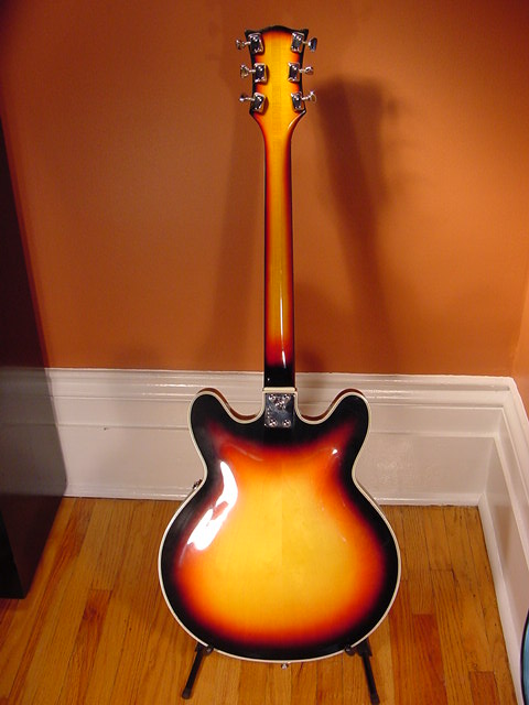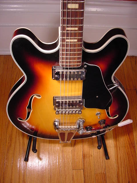 This model was an obvious take on the Gibson 335 from the same era and almost identical to the VOX version. It is an extremely well made guitar (compared to the similar models that were coming from Japan at the time). The components look very similar to most VOX models of that era.