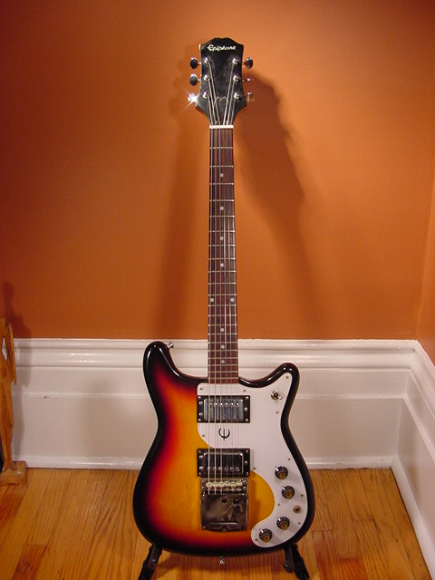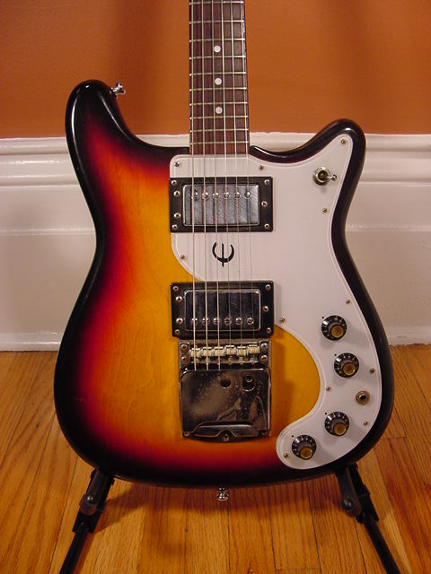Here are two examples of the Japanese made EPI Crestwood from the early 1970’s. The Epiphone ET Series guitars were solidbody guitars produced from 1970-1978 at the Matsumoku plant in Japan. In 1970, the decision was made to close down Kalamazoo production of Epiphones in favor of building them overseas in Japan. Epiphone decided to offer a new line of Japanese-built Epiphones that had more in common with other Japanese copies than previous Epiphone products.