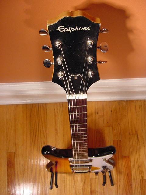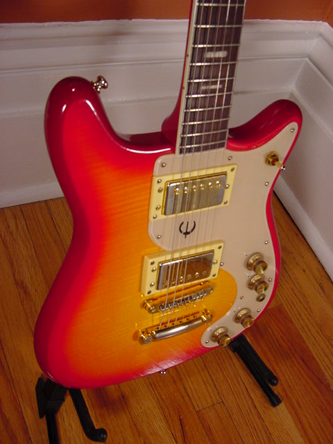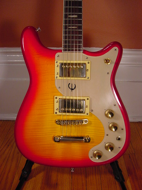 Nice to see a little interest on these Epi’s. I had one identical to the one in the second set of photos with the gold hardware for many years. They were a great looking and great playing guitar, but they sounded a little bland. A good set of aftermarket pickup would have done a world of wonders. Bottom line, a nice ax.