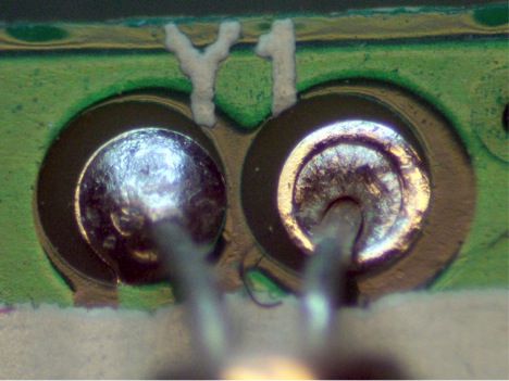 (not in a guitar, but shows a good solder joint vs a cold one on the right)